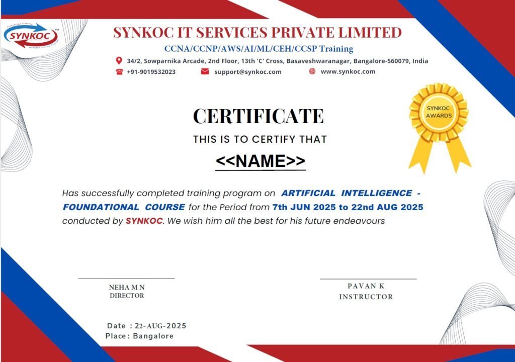 Yes. You will receive a Synkoc AI Foundational Course Certificate after completing the training.